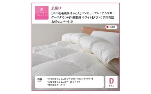 富士山の麓で作られた羽毛ふとん。最高ランク「プレミアムゴールド」を取得した逸品。【甲州羽毛肌掛けふとん】ハンガリープレミアムマザーグースダウン95%超長綿 ホワイト (ダブル) 羽毛布団 お任せ掛けふとんカバー付 肌掛け布団 羽毛布団 寝具 掛け布団 ダブル 山梨 富士吉田