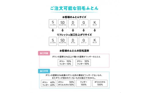 ・羽毛ふとんの到着が大幅に遅れると受付ができなくなる場合もございます。