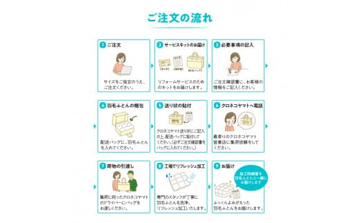 ・リフレッシュ加工キット到着後、できるだけ速やかに羽毛ふとんをお送りください。