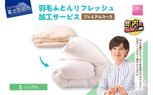 富士山の天然水でしっかり洗浄!羽毛のリフレッシュ加工です。【甲州羽毛ふとん】プレミアム羽毛リフレッシュサービス(シングルサイズ) ふとん 防ダニ 布団洗浄 シングル クリーニング リフレッシュサービス 年内発送 山梨 富士吉田