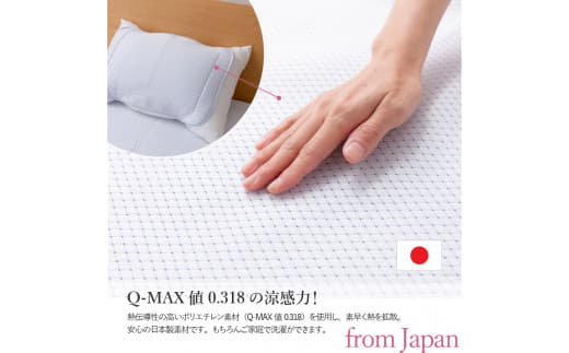 熱伝導性の高いポリエチレン素材(Q-MAX値0.318)を使用し、素早く熱を拡散。優れた日本製の冷感敷きパットです。表生地・裏生地共に、ハニカム構造素材を使用した立体二重構造のため、通気性・クッション性が抜群です。寝返りのたびにひんやり感がありますので、心地よくおやすみいただけます。ご使用時に扇風機や送風機などを併用していただきますと、さらに生地が放熱され、ひんやりを繰り返し感じていただけます。軽量で取り扱いが簡単です。ご家庭の洗濯機で丸洗いできます。