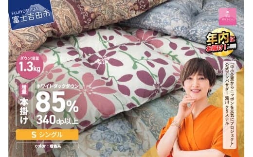 良質なホワイトダックダウン85%をたっぷり増量1.3kg使用! 羽毛本掛け布団 【数量限定!緊急支援品 訳あり】【12月発送】甲州羽毛ふとん 本掛け布団 増量1.3kg (シングル/お任せ柄)ダウン85% 暖色 掛け布団 シングル 本掛け 寝具