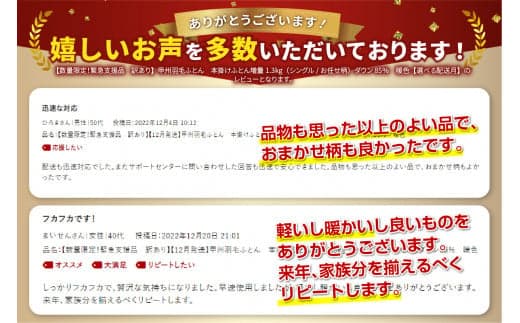 良質なホワイトダックダウン85%をたっぷり増量1.3kg使用!【数量限定!緊急支援品 訳あり】【2月発送】甲州羽毛ふとん 本掛け布団 増量1.3kg (シングル/お任せ柄)ダウン85% 暖色