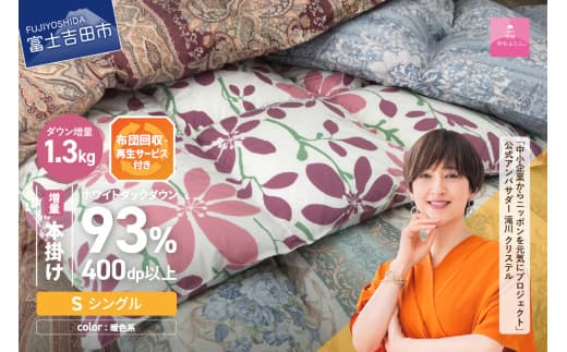 布団回収・再生サービス付き・高品質な羽毛ふとんです。 羽毛本掛け布団 羽毛布団 【数量限定!緊急支援品 訳あり】布団回収・再生サービス付き・甲州羽毛ふとん 本掛けふとんロイヤルダウン93%増量1.3kg (シングル/お任せ柄) 暖色 掛け布団 シングル 寝具 本掛けふとん 羽毛布団 山梨 富士吉田