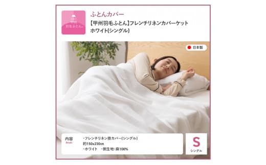 吸湿発散性の高い麻100%(フレンチリネン)生地を使用したプレミアムな掛カバー【甲州羽毛ふとん】フレンチリネンカバーケット(シングル)ホワイト 掛けふとんカバー ガーゼケット 掛布団カバー シングル フレンチリネン 山梨 富士吉田