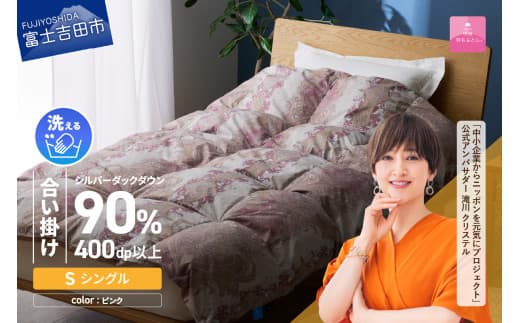 上質なダックダウンとアルミ蒸着加工のダブル効果で抜群の暖かさをお届けします。【甲州羽毛合掛ふとん】手洗いできる中厚仕様の羽毛ふとん(アルミ加工)シングル・ピンク
